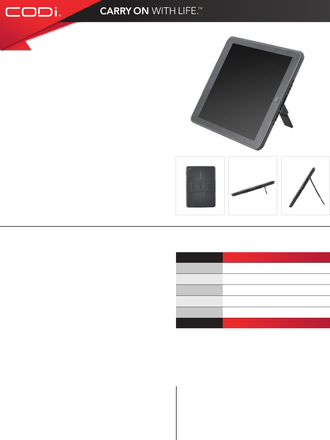 - CONVENIENTLY FITS INTO CODi’S iPAD AIR SLEEVE